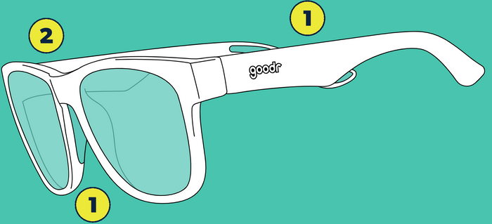 Glare-reducing, polarized lenses with UV400 protection that blocks 100% of harmful UVA and UVB rays.